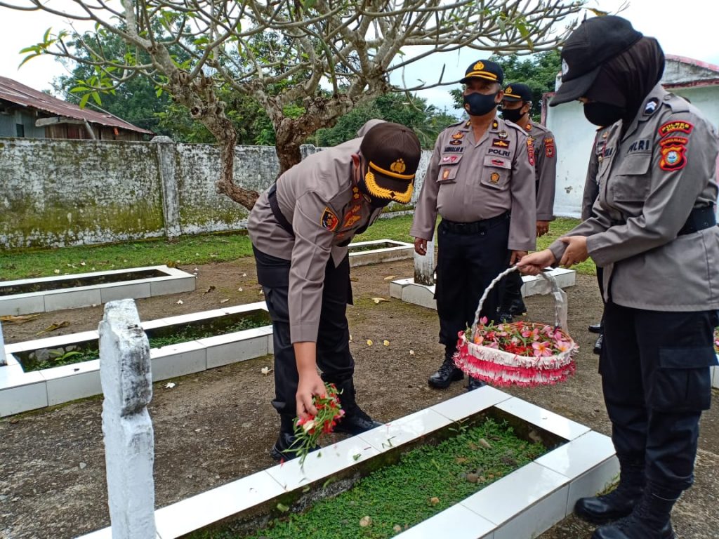 Peringati Hari Bhayangkara Ke- 74, Polres Sinjai Melaksanakan Ziarah Rombongan Ke Taman Makam Pahlawan